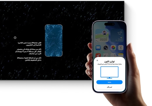 توازن مثالي. يعمل Apple TV 4K مع iPhone على ضبط الألوان تلقائياً لتظهر بأفضل صورة. كل ما عليك هو توجيه كاميرا iPhone نحو شاشة التلفزيون مرة واحدة، والاسترخاء لمشاهدة برامجك وأفلامك بالروعة التي تستحق أن تظهر بها.