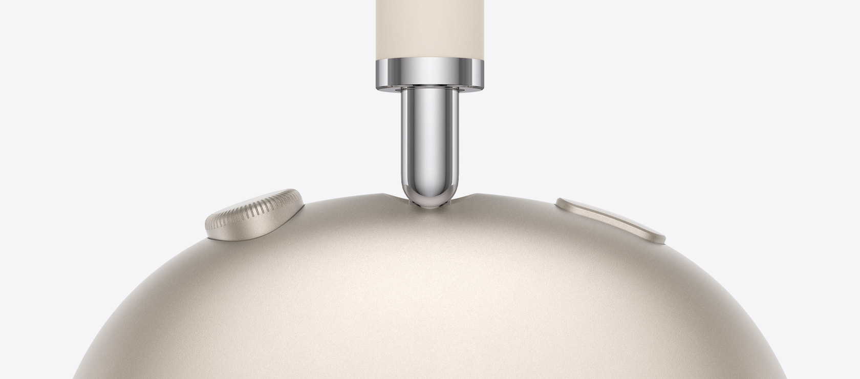 AirPods Max 2 headphones in purple color, top exterior, detail of noise control button and Transparency mode