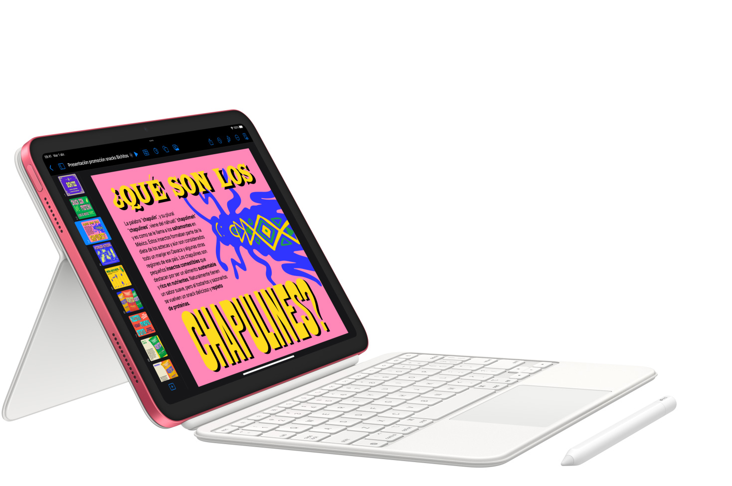 Dibuja, pinta y escribe con el Apple Pencil. Teclea con comodidad, desplázate por el trackpad y disfruta tu contenido favorito con el Magic Keyboard Folio y su genial diseño de dos piezas.2 Puedes usar los atajos de teclado que ya conoces y hacer clic en cualquier parte del trackpad. Juntos hacen magia.