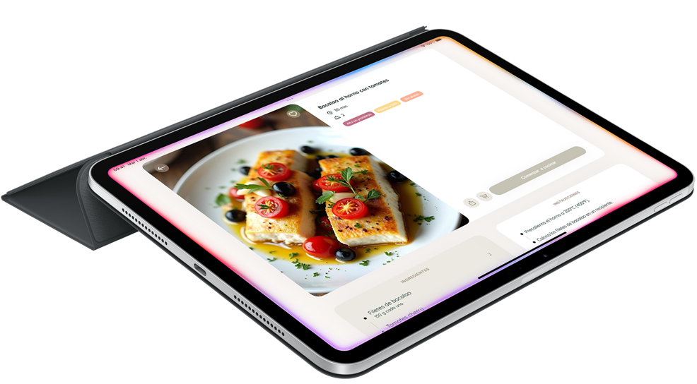 Haz más desordenando menos. Pon temporizadores, convierte medidas y llama a tu familia a la mesa con el Interfón del HomePod. Todo sin ensuciar tu iPad.