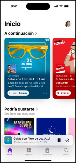 Disfruta reproducción sin anuncios, contenido adicional y episodios inéditos de tus programas y creadores favoritos, además de otros beneficios exclusivos de tu suscripción.1 También puedes conectar tus suscripciones de Apple Music y las mejores apps del App Store para acceder a todo tu contenido de audio premium en un solo lugar.