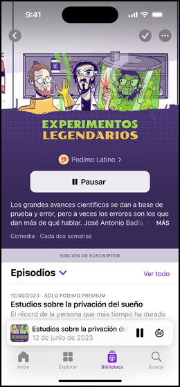 • Sí. Todos los episodios se pueden descargar para escucharlos sin conexión, y los episodios nuevos de los programas que sigues se descargan automáticamente. Puedes encontrar todos los episodios descargados en la sección Descargado de tu biblioteca.
