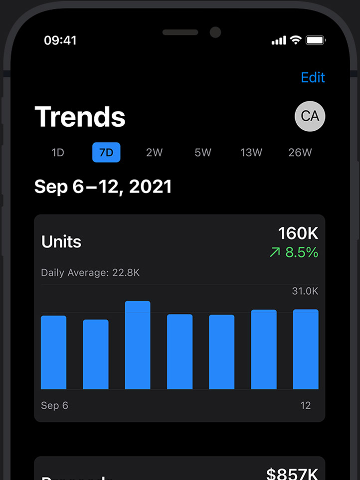 Jeden Monat analysieren wir Milliarden anonymisierter Datenpunkte, die Entwickler:innen über App Store Analytics wertvolle Einblicke in ihr Business liefern.