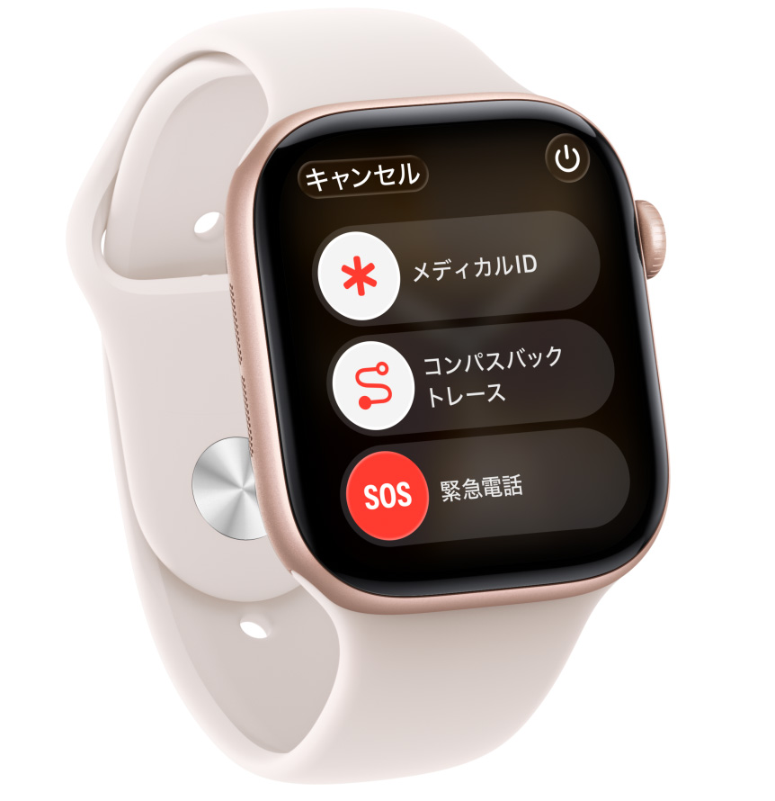 助けが必要な時は、サイドボタンを長押し。Apple Watch Series 11が緊急通報サービスへの連絡と位置情報の共有を試みます20