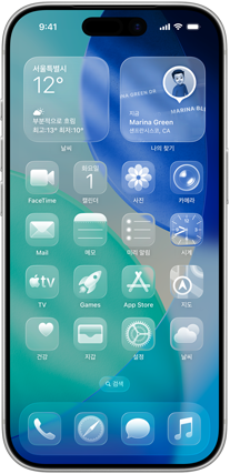유리의 광학적 성질과 유려한 감각을 갖춘 Liquid Glass는 ‘잠금 화면’, ‘홈 화면’, ‘제어 센터’, 앱 등에 표현력이 풍부한 새로운 디자인을 선사합니다.