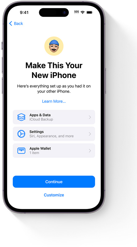 Restore your device or set up a new one from your iCloud backup to seamlessly bring along all your photos, files, contacts, apps, settings, and more, so it looks just like your previous one.