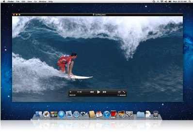 QuickTime X 包含強大的 QuickTime Player,已有上百萬名使用者以這個應用程式觀賞各種影片格式檔案。QuickTime Player 採用 OS X 的 Core Animation 技術,提供清爽簡潔的介面,以及不需要時即隱藏起來的控制項目。QuickTime Player 會以影格方式顯示每一個章節標記的縮圖檢視,取代只有文字的章節名稱,使得瀏覽具有章節標記的媒體內容相當輕鬆簡便。QuickTime Player 還可讓你將媒體剪輯片段裁剪成完美的長度,甚至將數個剪輯片段合併成一部影片。