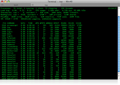 OS X 建立在業界標準的 UNIX 基礎之上。終端機應用程式可讓你使用標準命令、工具和工序指令語言,操作整個 UNIX 環境。終端機包括許多節省時間的快捷方式。例如,你可複製貼上文字命令;如果將文件或文件夾拖拉到終端機之中,正確的文件路徑會顯示在命令列之中。你可選用喜歡的字體和背景顏色(包括透明色)自定終端機,還可以使用標籤,在單一視窗中管理多個使用期間。